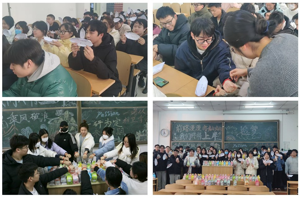 活动现场,学院辅导员代表、低年级学生代表为考研学子们送上了亲手制作的“上岸船”、糖果、巧克力和橙子等充满美好寓意的小礼品。以此表达学院对考研学子的深切关爱与真挚祝福,为他们顺利“上岸”送上美好祝愿。
