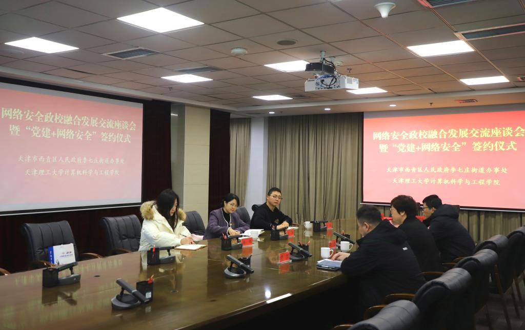 近日,计算机科学与工程学院同李七庄街道召开网络安全政校融合发展交流座谈会暨“党建+网络安全”合作共建签约仪式。学院教师代表、李七庄街相关负责同志参加本次活动。