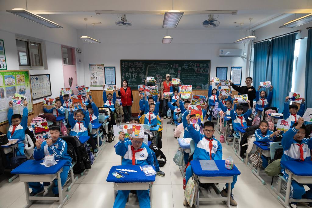 学生志愿者走进辛口镇中心小学课堂,通过图文并茂的讲解,向小学生们讲述雷锋事迹,诠释“螺丝钉精神”的时代内涵。在互动环节,志愿者们带领孩子们用画笔描绘心中的雷锋形象。一幅幅充满童真的画作跃然纸上,孩子们用色彩传递着对雷锋精神的理解与敬仰。