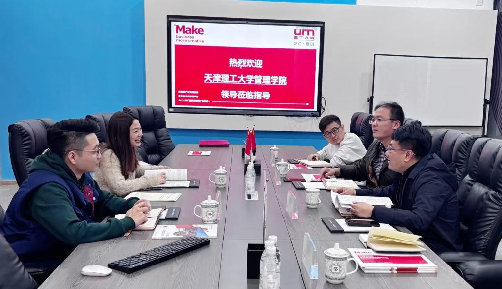 天津艺点意创科技有限公司综合管控中心相关人员介绍了公司发展历程,并就核心业务、创新案例、场景融合及党建发展等作了详细介绍。希望双方在科研项目合作、资源互联共享、人才培养合作、学生实习就业等方面探索创新路径,共建“校地企”合作新模式,推动高校人才培养与企业需求有效适配。管理学院相关负责人从学科建设、人才培养、创新创业、学生培养质量和学生实习就业等情况进行了介绍,希望校企双方紧密配合,共同探索创新人才培养新模式、新路径,不断优化课程体系、实习实训体系,推动教育教学改革创新发展。