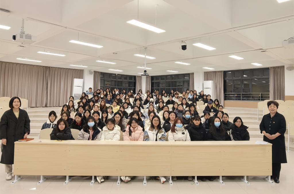 讲座伊始,马红健强调了女大学生自强自立的重要性,鼓励女生们尽早树立学业、事业和生活目标,并以“蓄势待发”为题,激励女生们珍惜大学时光,为未来的职业生涯积蓄能量。无论是考研、就业、创业还是出国深造,都应有清晰的规划。同时她鼓励学生们在人际交往中应拓宽交往,从优秀的人身上汲取经验。随后,祝东荣分享了自己的求学与工作经历,以亲身经历鼓励女生们勇敢追梦,不断提升综合素质和就业竞争力。