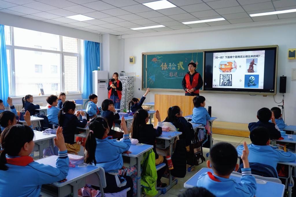 艺术学院志愿者融合非遗历史起源、发展脉络、传承故事和技法表现等内容,为小学生们带来启发式非遗文化课程。课程设计以小学生喜闻乐见的话题为切入点,由浅入深、丝丝入扣,课堂氛围幽默风趣、轻松融洽。在互动环节,小学生们踊跃参与,不仅学到了非遗知识,更点燃了同学们对非遗文化的热情。