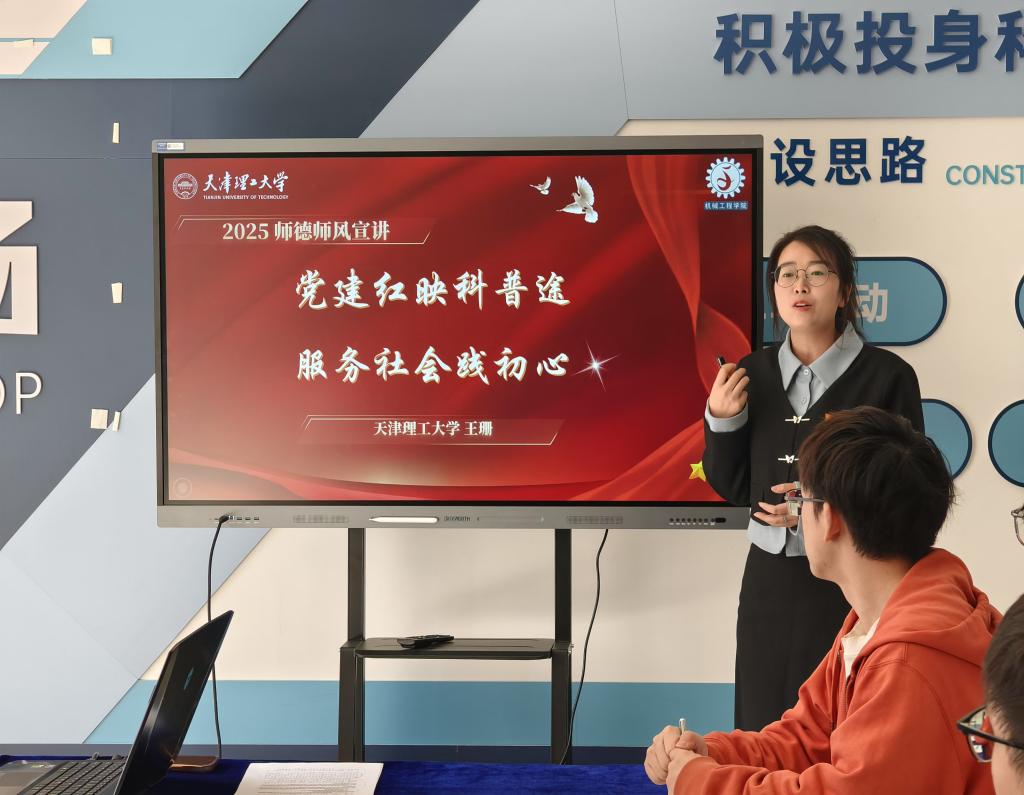 宣讲报告中,王珊介绍了机器人教本研党支部以学院的“天津市机器人与智能系统科普基地”为依托,积极探索党建引领科普工作的新模式。支部将党建工作与科普服务深度融合,以“党建红”照亮科普之路,在服务社会中践行教育初心,取得了一系列丰硕成果。教师党员以科普为桥梁,让知识走出象牙塔,让教育回归“育人”本质;以科普项目为载体,将专业知识转化为社会服务能力,推动全民科学素养提升。在科技创新与教育发展紧密相连的时代背景下,支部教师党员正以更饱满的热情、更严谨的态度,在科普教育的路上不断前行,为提升全民科学素养贡献力量,用实际行动书写师德篇章。