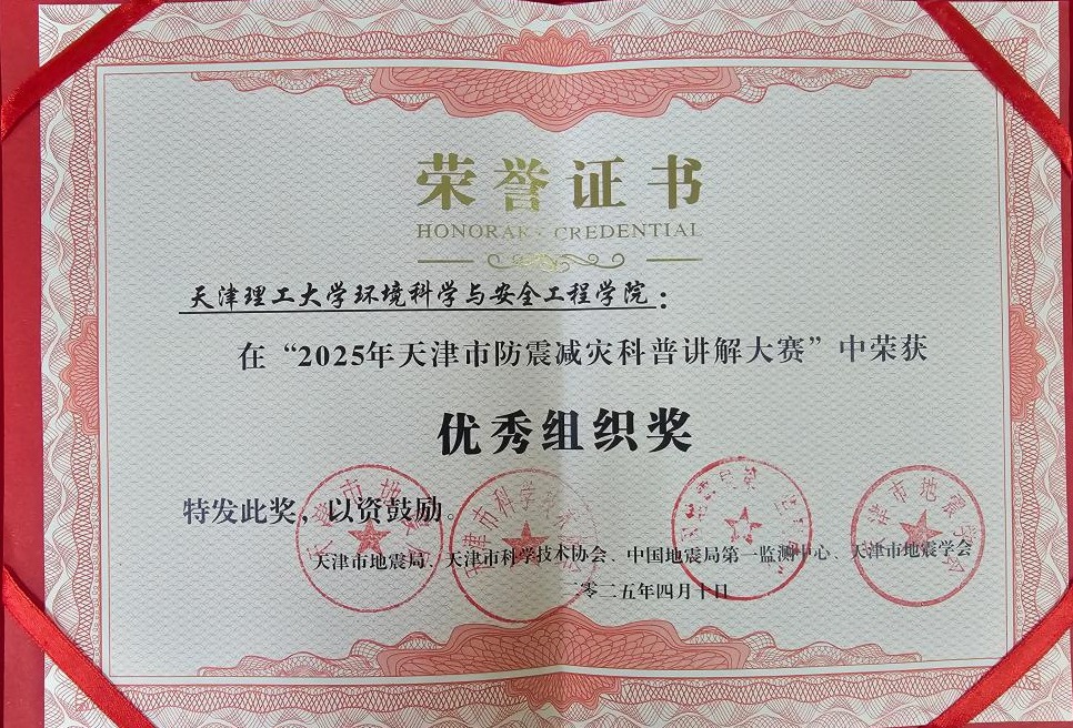 近日,2025年天津市防震减灾科普讲解大赛暨第九届全国防震减灾科普讲解大赛选拔赛结果公布。环境科学与安全工程学院获优秀组织奖、作品《地震次生灾害:危化品的泄漏与应对》获优秀奖、教师赵代英荣获优秀指导教师。