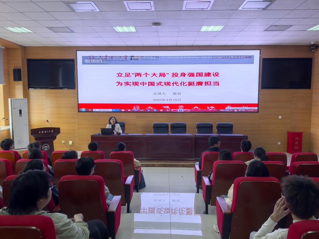 学院党总支主要负责同志讲授了“立足‘两个大局’投身强国建设 为实现中国式现代化挺膺担当”的主题党课,带领同学们认识世界百年未有之大变局和中华民族伟大复兴战略全局,理解时代为中国的发展提供的前所未有的重大机遇和风险挑战。鼓励同学们要将个人梦想与国家发展“同频共振”,为实现中国式现代化挺膺担当。