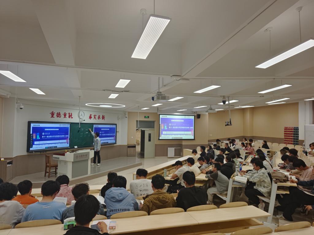 2022级应用物理学专业学生马富祥结合自身在第十届全国大学生物理实验竞赛(创新)、2024年高教社杯全国大学生数学建模竞赛的参赛经历,向同学们分享了如何发掘科研创新点以及如何通过竞赛提高自身创新能力,鼓励同学们多动脑、多观察、多钻研,不断提升自己的专业本领,把自己的理想追求融入时代的发展浪潮之中。