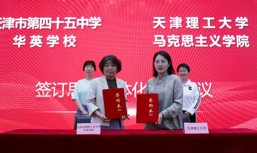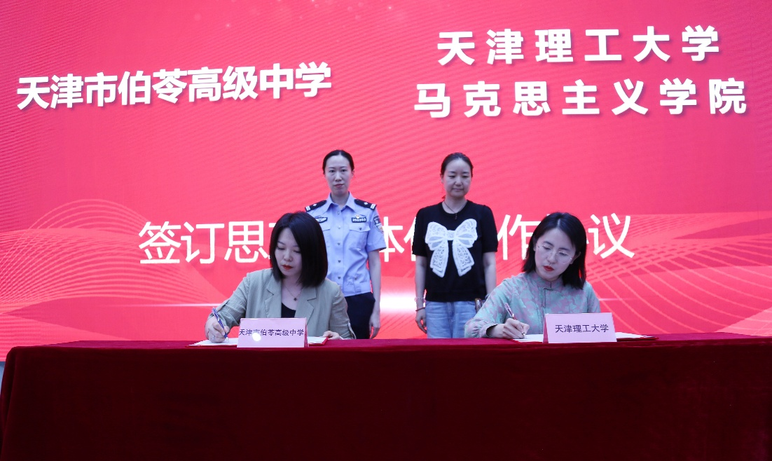 在教联体签约仪式上,学院与天津市第五十四中学、天津市第四十五中学华英学校、天津市伯苓高级中学分别签订大中小学思想政治教育一体化合作协议。