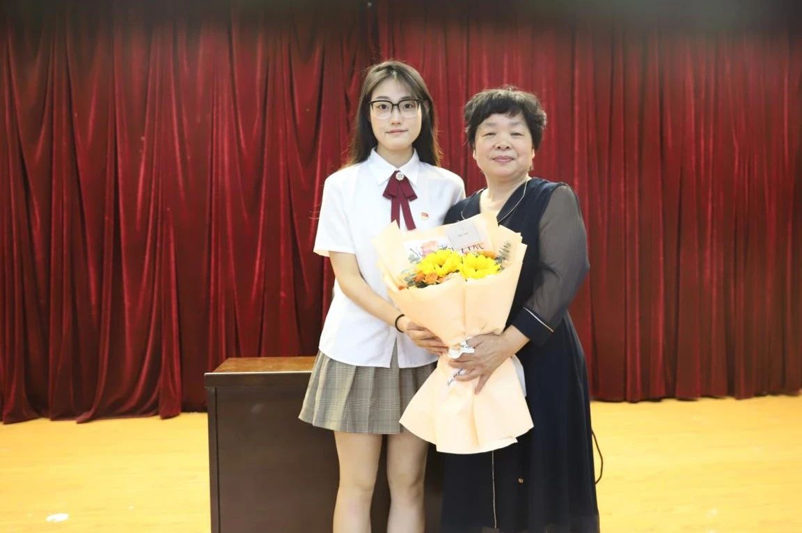 毕业生代表、22级材型专业学长助理代表向马红健献上一束鲜花,并代表全体学生表达了最崇高的敬意和最衷心的感谢。