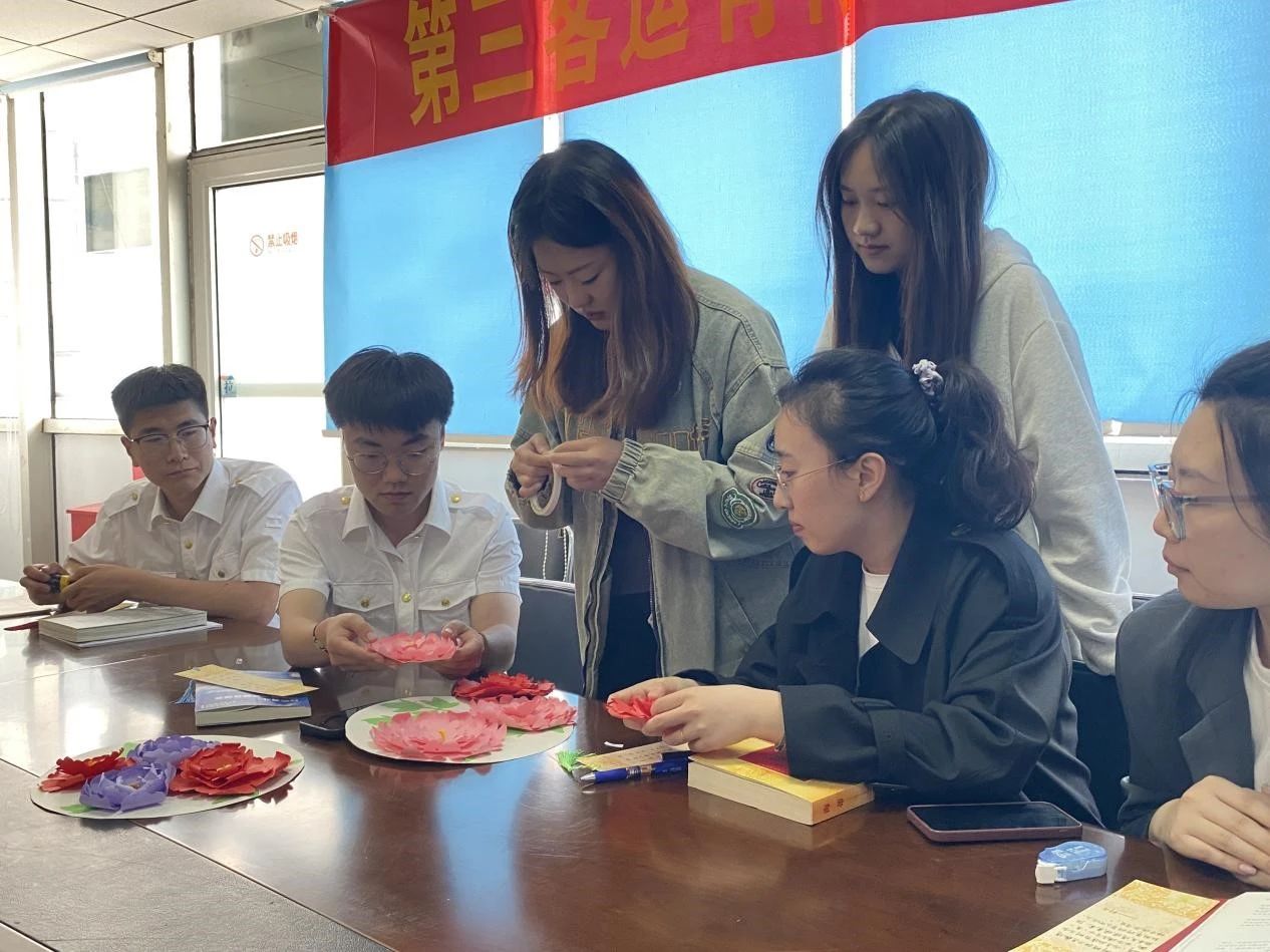 师生代表与公交职工互赠书签,表达最美好的祝福,并一起制作了牡丹花立体扇面。