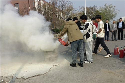在环安报告厅,学院相关负责人主持了消防安全教育培训会。会议邀请保卫处教师,围绕电器火灾、实验室火灾、宿舍火灾等方面,结合身边真实案例,详细讲解了处置方法和注意事项。在学校西南角空地上,保卫处教师详细讲解了灭火器的种类、使用方法等内容,并组织现场师生开展了灭火实训演练活动。