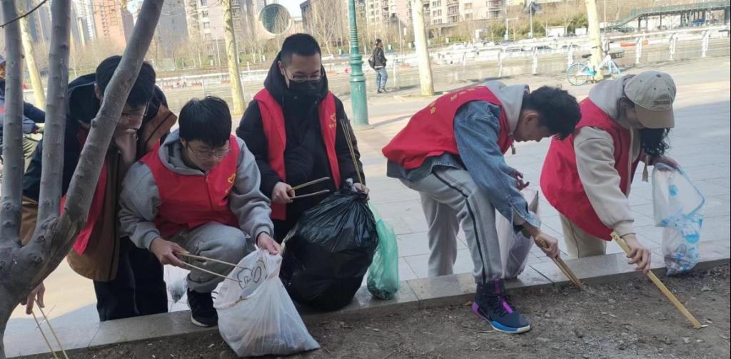 在工作人员的引导下,志愿者们领取工具、分工合作。大家沿着进步桥至金汤桥河段,手持垃圾钳、垃圾袋、扫帚等工具,清扫绿化带、健身步道、公园等。通过志愿服务,收获了整洁的环境和劳动的快乐。