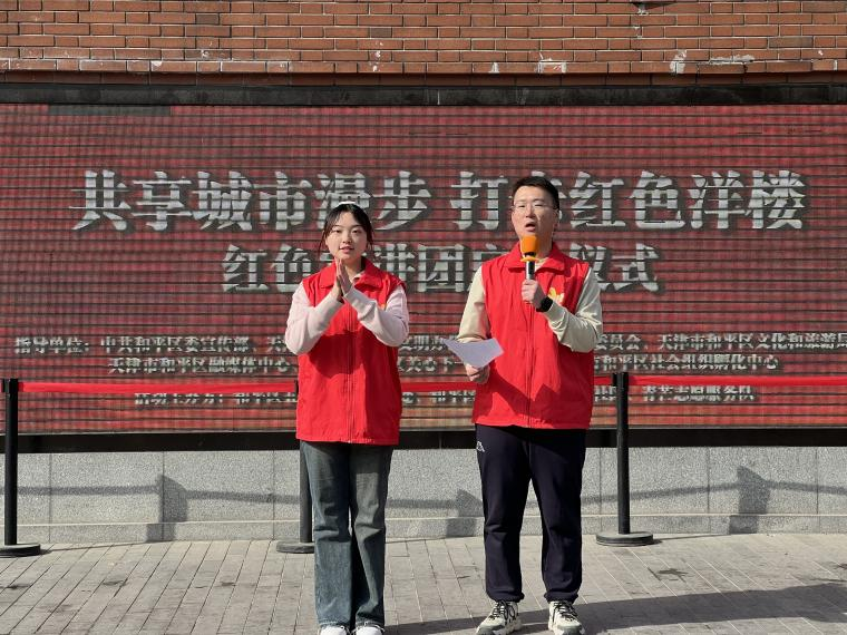 3月2日,志愿者们来到五大道民园广场,参加了“共享城市漫步,打卡红色洋楼”红色宣讲团启动仪式。作为宣讲团成员,学院志愿者们生动地讲解天津城市文化和红色历史,让大家深刻感受到了天津这座城市深厚的文化底蕴。