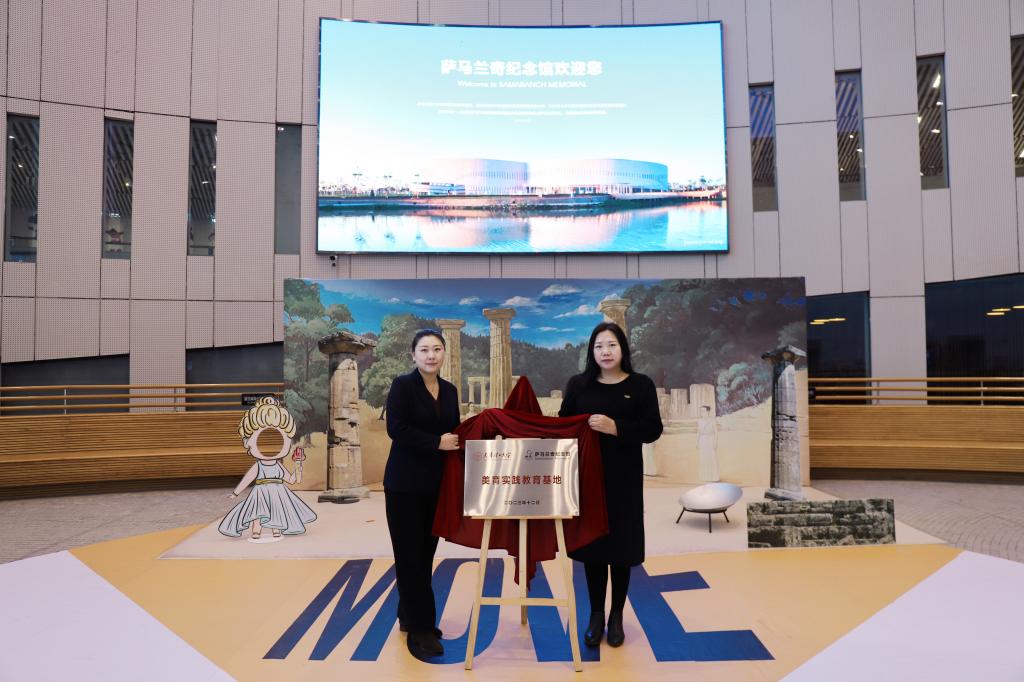 校团委主要负责人与萨马兰奇纪念馆相关负责人共同为“奥林匹克文化美育实践教育基地”揭牌。