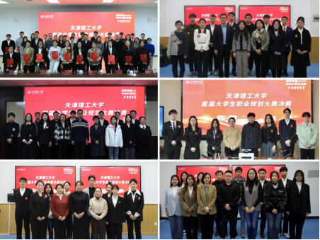 12月13日,学校举办了首届大学生职业规划大赛决赛。来自招商银行、新东方、华为、新浪微博、三安光电、天地伟业等用人单位以及天津工业大学、天津中医药大学等高校的23位嘉宾担任大赛专家评委。西青区人社局、滨海高新区人社局相关负责同志,学校党委学工部、学生就业指导中心负责同志,各学院分管学生工作负责同志出席活动。