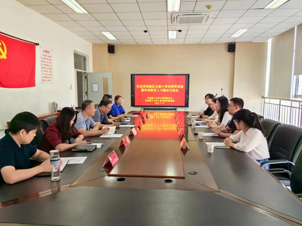 近日,滨海新区玉簪小学校长石莉一行5人来我校工程训练中心调研,就科技服务、科普教育及科学课程等主题进行交流。