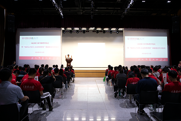 2023级新生代表冯一州讲述了初入天理的温暖感受,号召大家坚定理想信念,勤奋刻苦学习,不负时代重托,践行青年使命。
