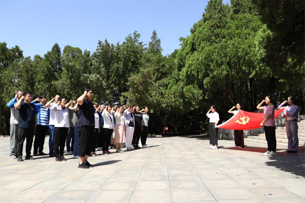 在塔山阻击战纪念馆广场,大家面向鲜红的党旗,重温入党誓词,表达了对党的无限忠诚和美好祝福。