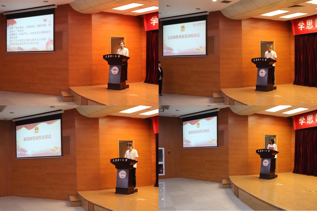 随后,学院党委书记邵邠同志带领37名新党员面向党旗进行入党宣誓,与会师生党员一起重温入党誓词。邵邠同志表示,作为新时代的共产党员,希望大家牢记习近平总书记的谆谆教诲,坚守共产党人精神追求,牢记共产党人初心使命,永葆共产党人政治本色。