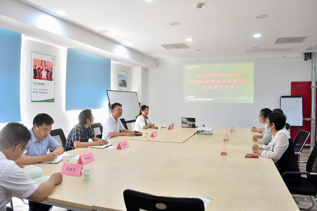 座谈会上,天津实朴赵胜楠总经理对学院师生代表的到来表示热烈欢迎,详细介绍了公司的发展情况,公司服务内容及其在环境土壤、环境水气等八大领域的创新和应用情况以及企业的未来发展情况。环境科学与安全工程学院党委书记全面介绍了学院的办学情况和专业特色,并深度调研了企业对于毕业生专业知识、实践技能、综合素质等方面的需求,在推进实践实习、产教研合作等领域双方进行深入交流,达成初步共识。双方表示要进一步深化校企合作和供需对接,在学生实习实践、课程建设、毕业生就业等方面建立良好的校企沟通机制,建立人才培养、就业联动的常态化合作,努力形成校企双赢的良好局面。