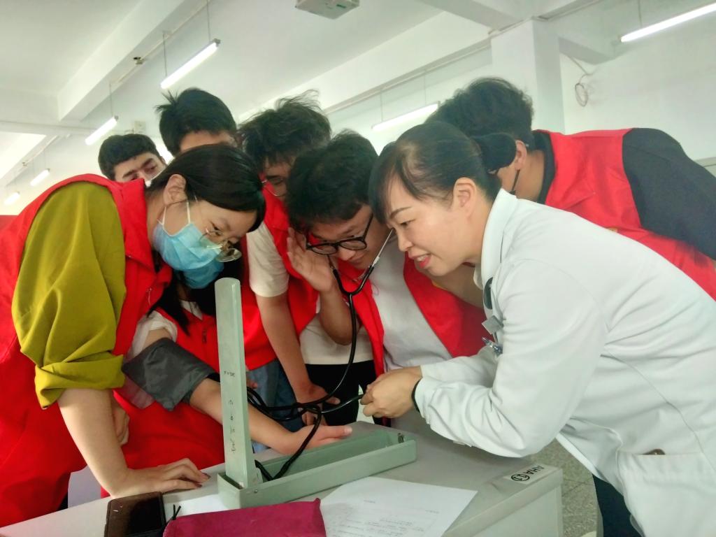 培训现场,天津市第三中心医院李雁平老师为学院志愿者详细讲解了脉搏测量、呼吸频次测量、汞柱型血压计使用、心肺复苏和海姆立克急救法等理论知识,并采用现场实操教学带领志愿者实践操作,帮助志愿者更有效地掌握相关技能,为志愿者参与医疗方面志愿服务提供了必要的知识和实践储备。