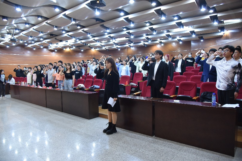 活动最后,全体共青团员在闫奕铭同学的带领下重温入团誓词,齐唱中国共产主义青年团团歌《光荣啊!中国共青团》。