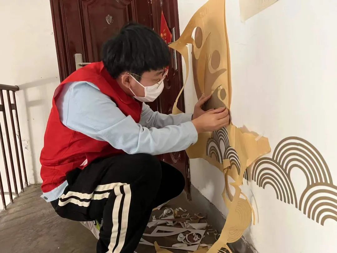 在李七庄街道集贤里社区楼门文化改造活动中,社会发展学院志愿者们和社区居民一起装饰小区楼道,根据墙面的大小、空白范围等现实情况,合理划分装饰区域,确定装饰画的张贴布局。改造后的楼道变得更加整洁美观,居民在上下楼时有了更加愉悦的审美体验,生活的幸福感和满意度得到了大幅提升。