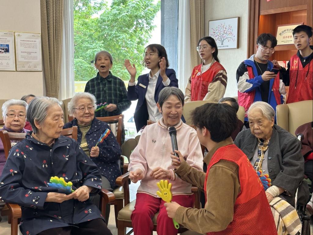 志愿者们精心准备了一台文艺节目,给老人们带去欢声笑语,老人们也分享了自己青年时代的故事,叮嘱同学们要把握大好时光,有所作为。谈到动情之时,老人高歌一曲,鼓励同学们说:“只要你的心还在跳动,还不曾对生活妥协,还没有放弃梦想,你依然是年轻的!加油,中国的新青年们!”活动室洋溢着欢笑与掌声,“过来人”与青年人心灵碰撞,互相陪伴,收获爱与温暖。