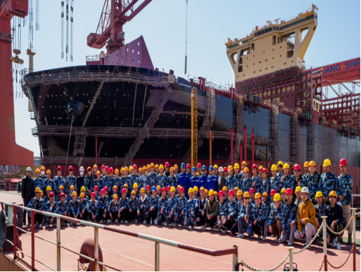 此次航行实习,包括安全生产教育、沙盘解说及船模参观、观摩船舶生产现场、船舶建造工艺技术讲解及答疑等内容。实习过程中,学院师生参观了船舶生产的全流程车间、场地等环节,观摩了16000箱集装箱船舶建造现场,企业相关技术人员就师生在工作、学习过程中关注的船舶建造工艺等技术进行了讲解和答疑。实习内容丰富、实用性突出、紧贴航运业发展大势,效果突出。