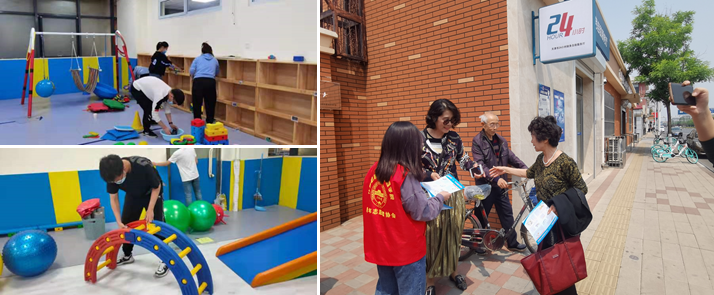 在宜童自闭症服务中心和水上公寓社区完成挂牌仪式后,随即在基地负责老师的安排下,同学们分别开始进行劳动服务。在自闭症中心,同学们帮助老师打扫教室、查文档、整理资料,制作教具。在水上公寓社区,帮助社区工作人员散发防范电信诈骗传单和防震减灾知识的传单,深入到社区对新冠疫苗进行宣传和接种统计,用科学依据,和所学所了解的知识,积极地回答了社区居民对于这方面的问题和疑虑。