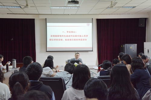 为贯彻落实习近平总书记在党史学习教育动员大会上的重要讲话精神,高质量高标准开展党史学习教育,4月21日,环境科学与安全工程学院党委邀请我校党史学习教育宣讲团成员、马克思主义学院形势与政策教研室主任王青山老师作专题报告。学院全体教师、学生代表共计80余人参会。
