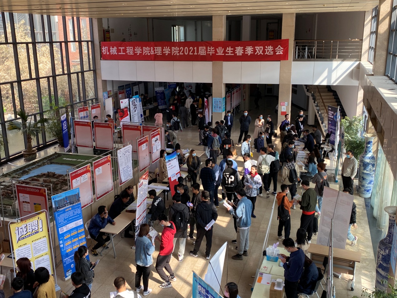 为促进我校毕业生尽快落实工作,帮助学生拓宽就业渠道,为企业与学生之间搭建双选平台,2021年4月7日上午9:00-11:00,机械工程学院与理学院共同在理学院一楼大厅举办了2021届毕业生春季双选会。