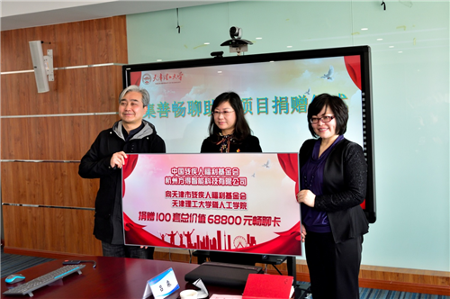 捐赠仪式上,杭州方得智能科技有限公司为我院聋人学生捐赠100套无障碍通讯产品,助力听障学生发声。市残疾人福利基金会和聋人工学院主要负责同志接受捐赠。