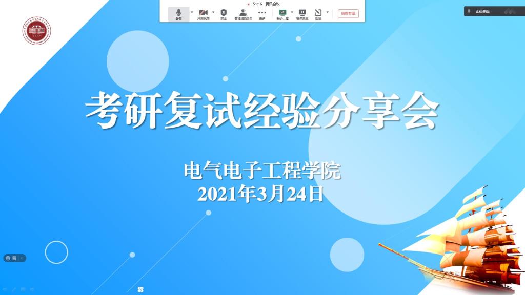 为进一步落实学校教风学风建设年工作要求,推进学院本硕学风融合建设,作为为师生办实事活动之一,3月24日,电气电子工程学院举办线上考研复试经验分享会。