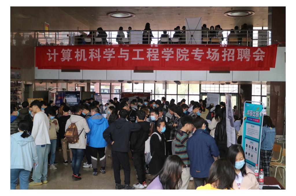 2021年3月24日上午,计算机科学与工程学院春季首场线下双选会在学院大厅召开。学院领导、毕业生辅导员及就业负责教师来到双选会现场,详细了解企业用人需求、招聘情况及学生求职状况,学院毕业生广泛参与,此次双选会取得了圆满成功。