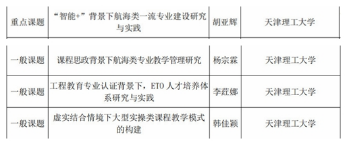 近日,中国交通教育研究会发布了《关于公布中国交通教育研究会2020-2022年度交通教育科学研究课题立项评审结果的通知》。海运学院4项课题获批立项。其中,重点课题1项,一般课题3项。