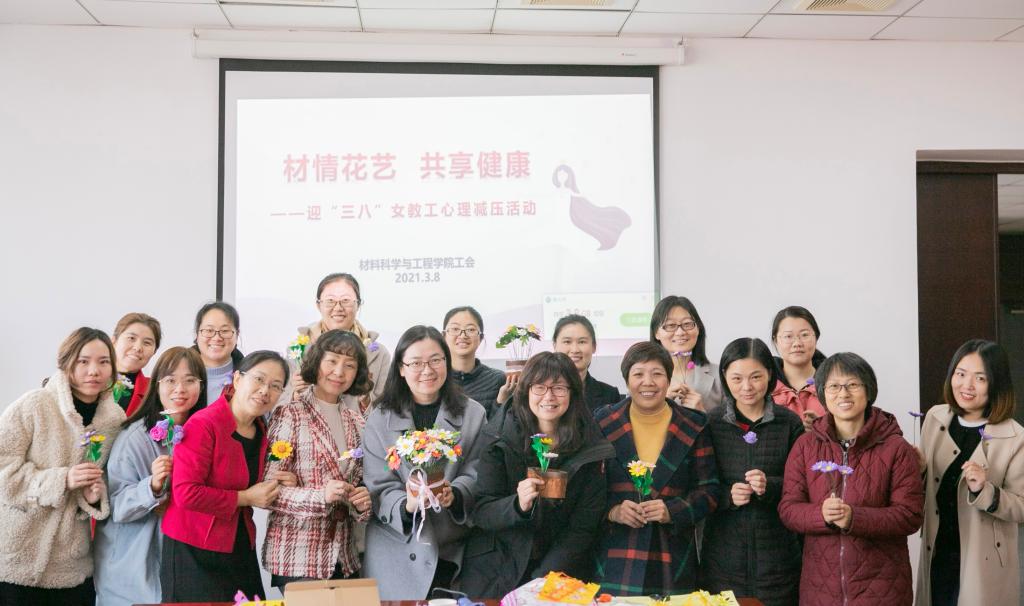 在第111个“三八”国际劳动妇女节到来之际,为了让广大女职工度过一个充实愉快、富有意义的节日,材料科学与工程学院3月8日举办了“材”情花艺,共享健康迎“三八”女教工心理减压活动。材料科学与工程学院、新能源材料与低碳技术研究院、功能晶体研究院共30余位女教工参加活动。