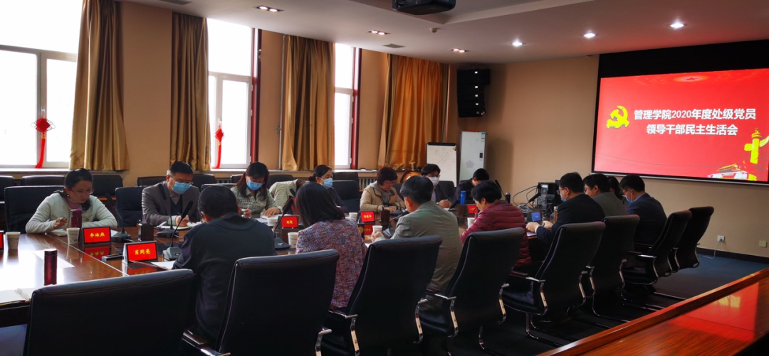 1月14日上午,管理学院2020年度处级党员领导干部民主生活会在25号楼318会议室召开。校党委副书记郭滇华同志,校党委与市纪委监委派驻纪检监察组组成的督导组成员刘迎同志、赵钢同志、李海燕同志全程参与,管理学院领导班子成员张冬梅、王天耀、杨强、刘炳春、赵斌、李冬梅以及党委委员李春发、孙春玲、肖同亮等9位同志参加会议,班子中的非党员处级干部王京滨列席会议,会议由学院党委书记张冬梅同志主持。