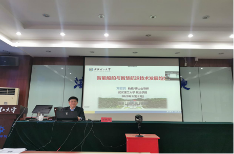 报告会上,刘敬贤教授以《智能船舶与智慧航运的发展趋势》为题,从人工智能与交通运输的发展概况、航海科学技术发展、智能船舶技术发展、智慧航运发展趋势、武汉理工大学航运学院科研概况等五个方面详细介绍了智能航运系统的发展现状与趋势,重点阐述了智能船舶和智能港口领域的典型案例与成果。报告内容丰富、专业性强,与会人员受益匪浅。