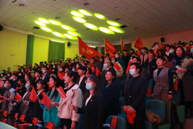 典礼尾声,全场观众相继唱响《我爱你中国》《歌唱祖国》,将本场颁奖典礼推向高潮。大家挥舞国旗,向祖国深情告白。嘹亮的歌声,舞动的红旗,寄托了师生们对伟大祖国深深的热爱和自豪。