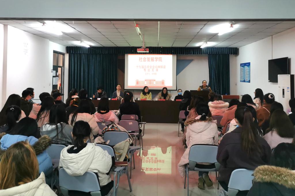 为进一步贯彻落实党的十九届五中全会精神和学校“教风学风建设年”工作要求,为考研学生有针对性、直接性地进行答疑和指导,社会发展学院于11月26日举办党的十九届五中全会精神解读专题党课暨教工党支部联系学生考研答疑会,学院党政负责人、优秀教师党员代表出席,五十余名学生参与。