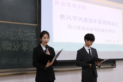 为全面贯彻落实学校“教风学风建设年”工作要求,营造良好的学习氛围,充分调动学生英语学习积极性,社会发展学院于11月20日晚举办教风学风建设年系列活动之大学英语学习经验分享会,2020级全体新生参加。
