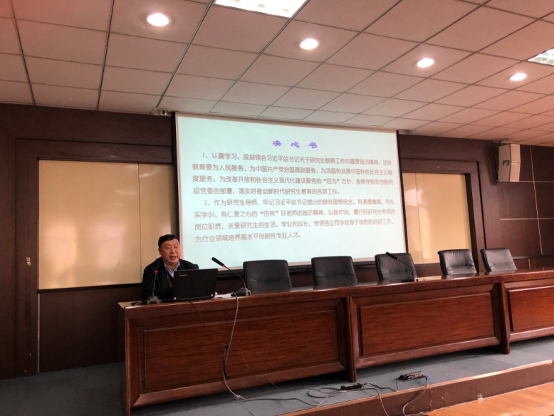 随后,两位导师代表进行心得体会的交流分享:提出提倡以创新、开拓、工匠精神培育研究生,并从党和国家事业发展的角度切入,深入浅出地分享对职业角色和学生培养的理解,建议导师与学生建立“陪伴式”关系;从做“四有”教师出发,分享自己在国家重大科技项目中带领研究生共同攻关,履行导师职责、关爱学生培育方面的体会,以亲身经历与大家分享着重研究生教育与科研工作的互生性。