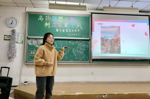 为全面贯彻落实学校“教风学风建设年”工作要求,丰富学生校园生活,优化学生学习、生活环境,进一步增强宿舍间的凝聚力,营造温馨和谐、勤学乐思、奋发向上良好氛围,社会发展学院于11月17日举办“高扬理想之帆,树立优良学风”系列活动暨第十届宿舍文化节。学生工作负责老师及20级全体新生参加。