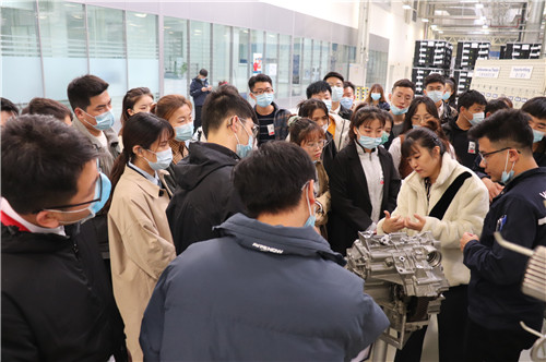 大众汽车自动变速器(天津)有限公司人事负责人刘佳(我院2019届优秀毕业生)带领学院师生参观生产车间,讲解变速器的原理、零部件及生产线,并详细介绍有招聘岗位的的生产、维修等部门车间。参观结束后,相关工作人员与毕业生进行面对面的交流,进一步增强对未来就业岗位的了解和自身就业能力的认识。随后,人力资源部、行政部、生产部等多部门负责人分别对应聘学生进行现场面试,多名应聘学生与公司达成录用意向。
