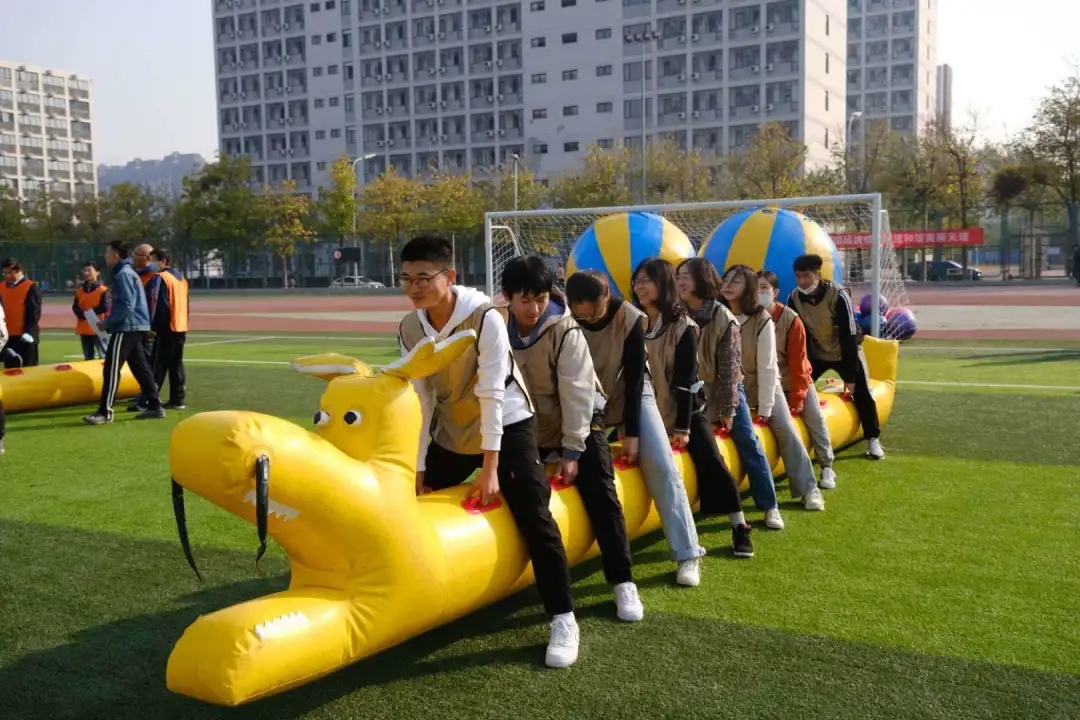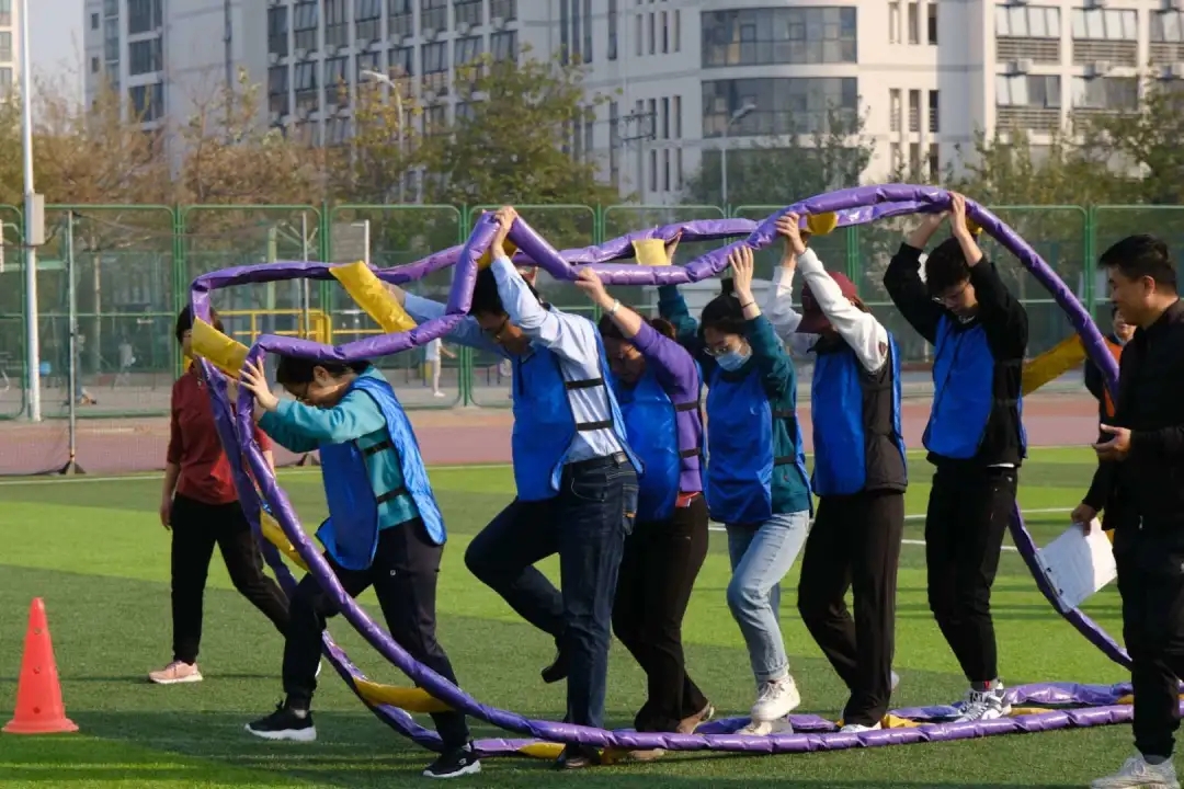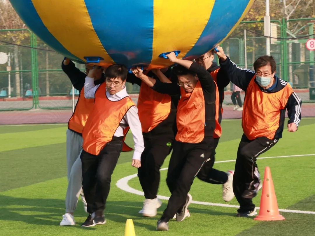 准备活动之后,随着裁判员一声令下,趣味运动会火热进行,丰富、有趣的运动项目让老师同学们乐翻了天。本次趣味运动会共包括“同舟共渡”“后浪滚滚”“同襄共举”和“一脉相承”4个项目。参赛的8支队伍由本科生党支部、研究生党支部和教工党支部共同组建,学院专任教师、行政人员和各专业本科生、研究生代表均踊跃参与。师生并肩携手合作奋力拼搏,展现了天理管院人齐心协力、攻坚克难、勇往直前的风采。