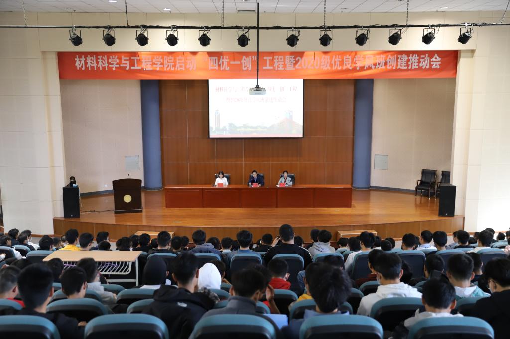 为扎实推进学校学风建设年活动,进一步营造良好学风氛围,构建适应学校内涵的教风学风建设长效机制,材料学院多措并举,围绕“三风一训”即党风、教风、学风和校训广泛开展培育优良学风教育系列活动,推动形成“以优带学”的良好学习风气。10月21日,学院召开材料科学与工程学院启动“四优一创”工程暨2020级优良学风班创建推动会,材料学院学生工作主要负责人出席会议,2020级全体学生参会。