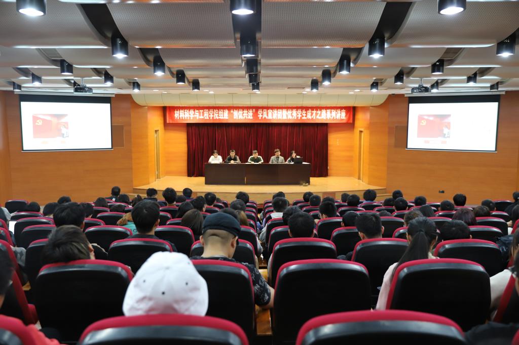 会议伊始,2018级材型3班“创优共进”学风宣讲团进行了自我介绍,材料学院学生工作负责人为宣讲团成员颁发聘书并宣布“创优共进”学风宣讲团正式成立,接下来三名宣讲团成员分别进行了个人学习经验宣讲、优良学风班建设宣讲以及科技创新宣讲,整场讲座内容贴近学生实际、满足学生需求,同学们纷纷表示讲座内容很实在,正是他们想要了解的内容,今后他们也会“向优看齐”,努力提升自己。