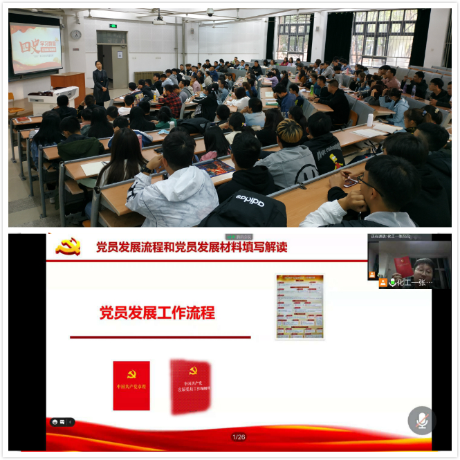 为深入贯彻习近平总书记关于深入学习党史、新中国史、改革开放史、社会主义发展史的重要指示精神,落实学校关于加强“四史”学习教育的工作要求,坚定大学生理想信念,教育引导同学们知史爱党、知史爱国、爱校荣校。10月6-7日化学化工学院采取线下线上的形式分三批对全体2020级新生进行“四史”学习教育专题党课培训及入党申请书材料撰写说明会。