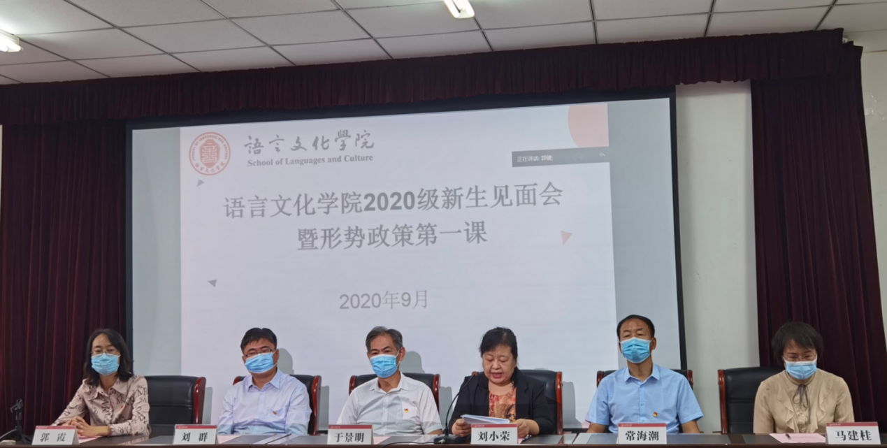 9月26日上午,语言文化学院在学院楼531召开2020级新生见面会暨形势政策第一课。语言文化学院领导班子、系部主任、教务办老师、全体辅导员以及2020级全体本科生和研究生参加了此次会议。