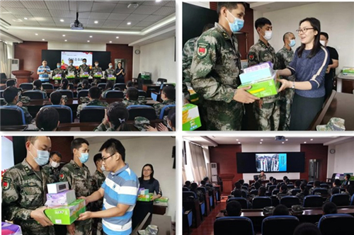 报告结束后,学院党委书记从蓉老师对2020级新生的军训成果给予了充分的肯定,对各位军训教官的辛苦训练给予了高度的赞扬和衷心的感谢,希望各位军训教官能够积极配合学校武装部工作,按照要求对2020级新生科学施训。嘱托参训学生在军训期间要照顾好身体,保证顺利完成军训,通过军训生活磨炼意志品格,提升责任担当,为今后的学习生活奠定良好的基础。最后学院领导和辅导员老师们一起为军训教官发放了慰问品。